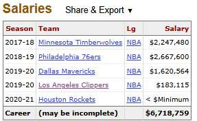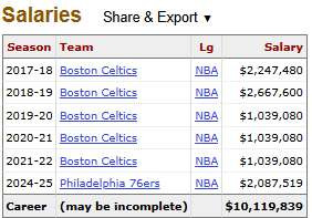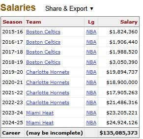 罗齐尔NBA生涯薪资合计约1.35亿美元。过去三个赛季,合同都超过2000万美元。