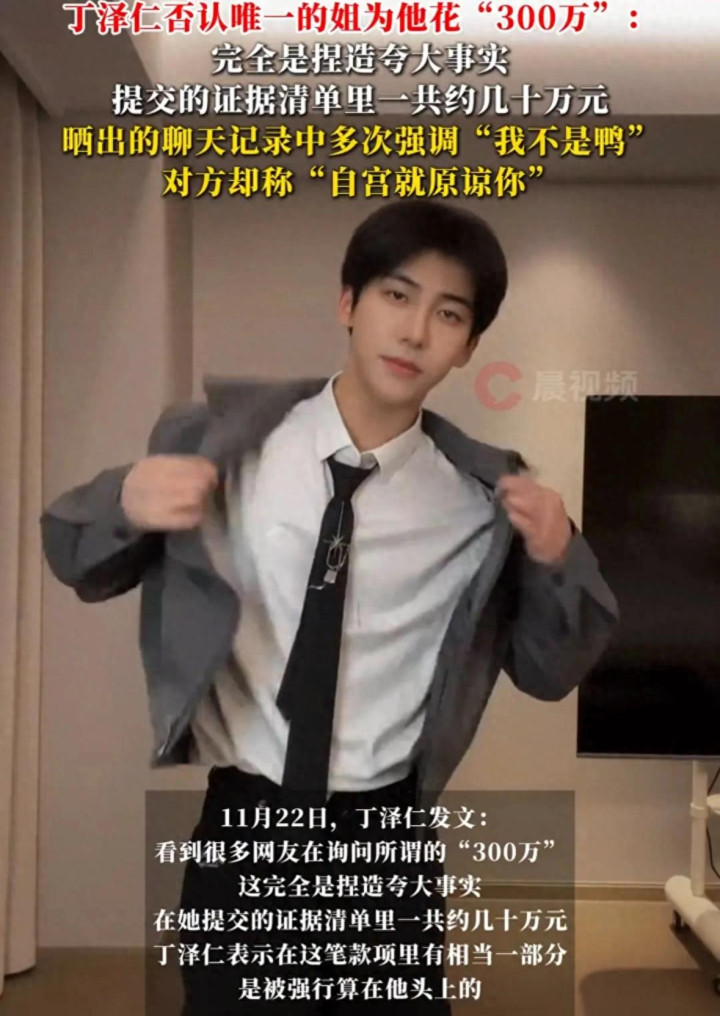 不仅仅是女爱豆,就连男爱豆也难逃被“控住”,去年的11月,选秀出道的人气偶像丁泽仁在社交平台发文称“自己被一位中年大姐姐控住”。
