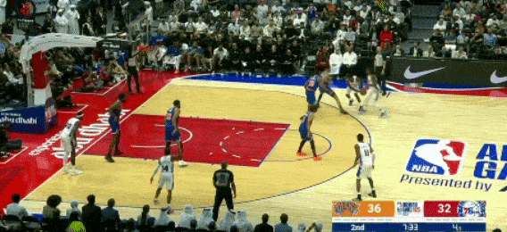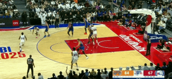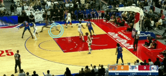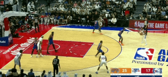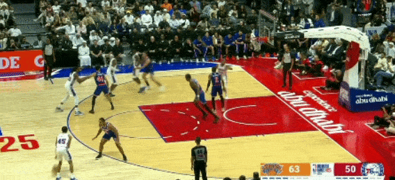 本场比赛看得出来,休赛期训练时,76人是有给埃奇库姆布置进攻战术的,比如下面两个回合,埃奇库姆都是战术终结点。