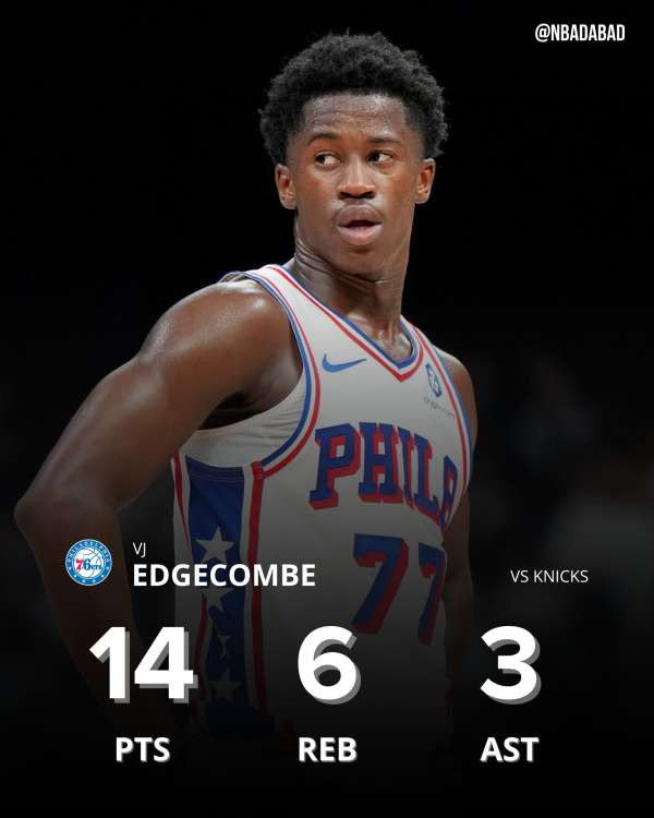 10月3日,季前赛第一场,76人客场84-99输给尼克斯,2025年探花郎VJ-埃奇库姆13投4中,其中三分6投1中,罚篮5中5,得到14分6篮板3助攻。尽管投篮糟糕,但是埃奇库姆的虎扑评分依然达到9.2分,这足以说明埃奇库姆其他方面展现出的天赋,弥补了投篮的不足。